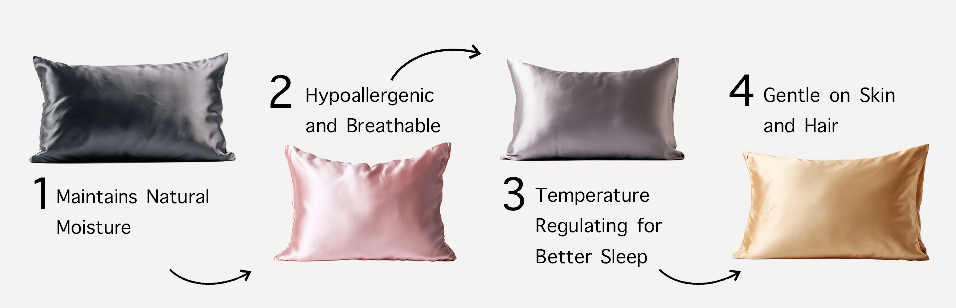 Our products use 100% pure 6A mulberry silk, known for its softness and durability. Care instructions vary by product — see the care section on each product page for full details. In short, silk is best hand-washed in cool water with a pH-neutral detergent, while satin can be machine-washed on gentle in cool water. Always avoid harsh chemicals, high heat, and direct sunlight when drying.